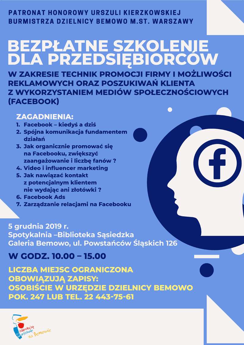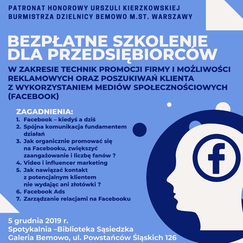 Szkolenie będzie poświęcone technikom promocji firmy i możliwościom reklamowym oraz poszukiwaniom klienta z wykorzystaniem Facebooka.